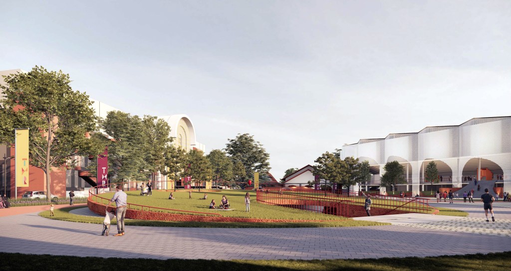 One of the strategies we used was designing a sunken building feature, with a rooftop that doubles as an active public space. This approach helps manage the visual hierarchy across the site, allowing the MICE building to maintain its prominence and appear grand and commanding within the overall composition.