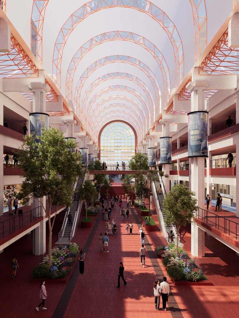This is the main atrium inside Hi-Tech mall building. This atrium plays a huge role in revitalizing both Hi-tech mall and the THR area behind it. We redisigned to be more spacious an bright, creating a clear connection through hi tech mall to the THR at the back of the site. We removed the elevator that was structured in the midle of the atrium somewhere else, hence creating a more pleasing ambiance.